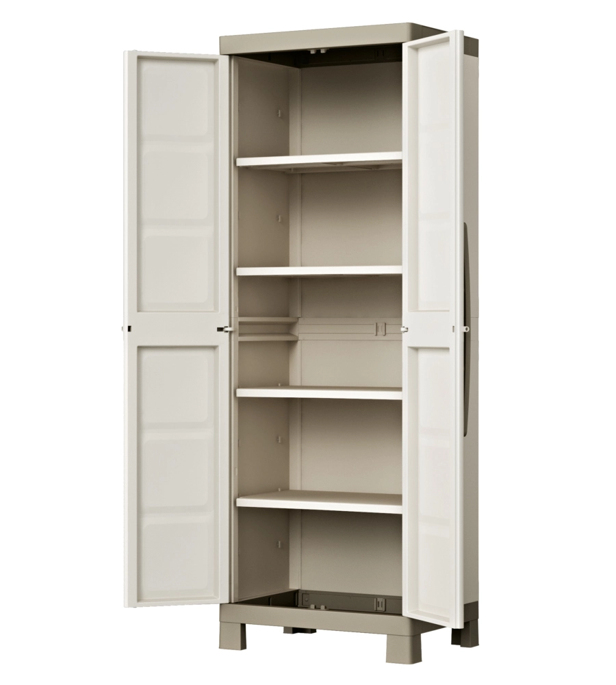 • Organizzazione Interna: Include 4 ripiani interni regolabili in altezza, ciascuno con una solida capacità di carico fino a 15 kg (o 25 kg per la versione XL) per adattarsi a oggetti di varie dimensioni.