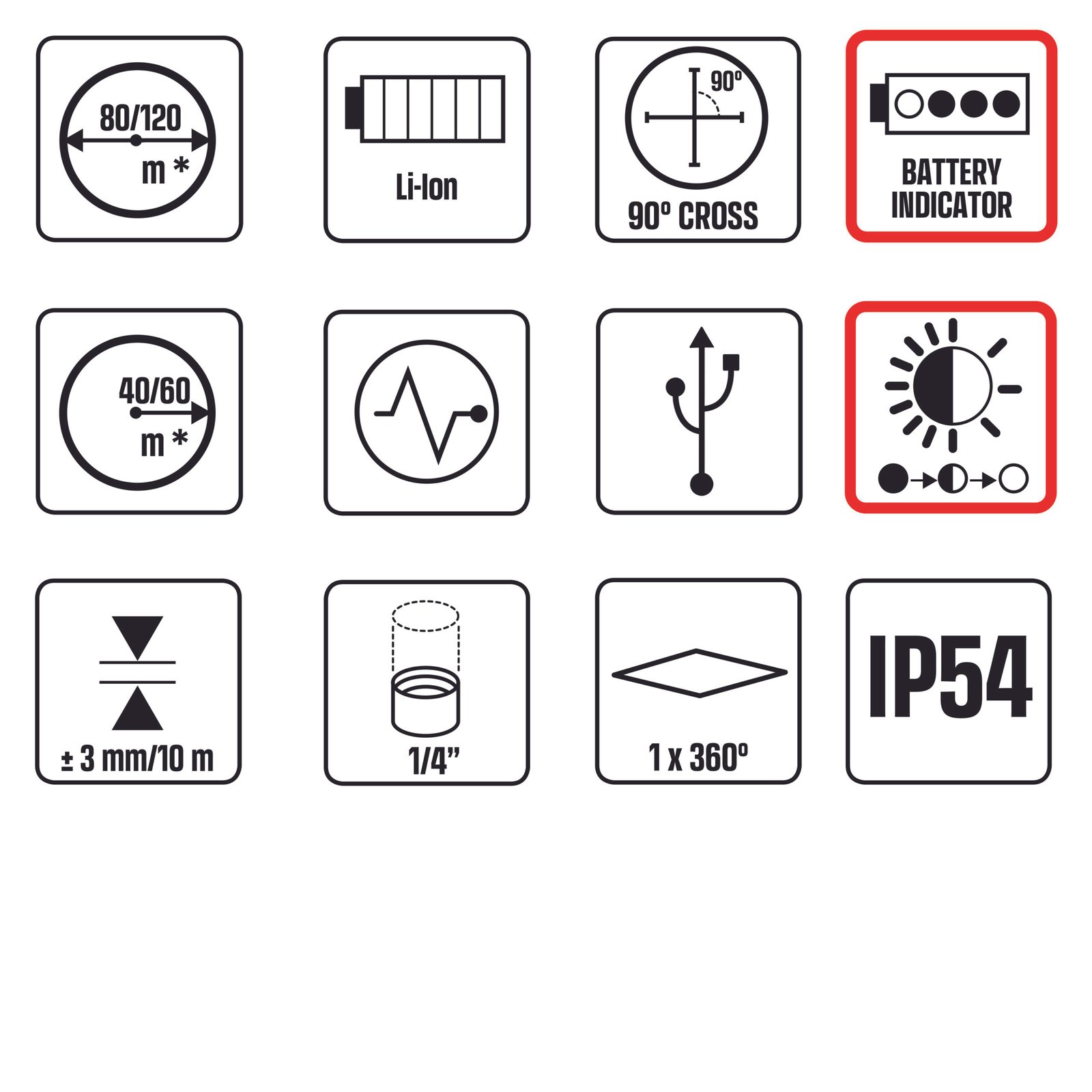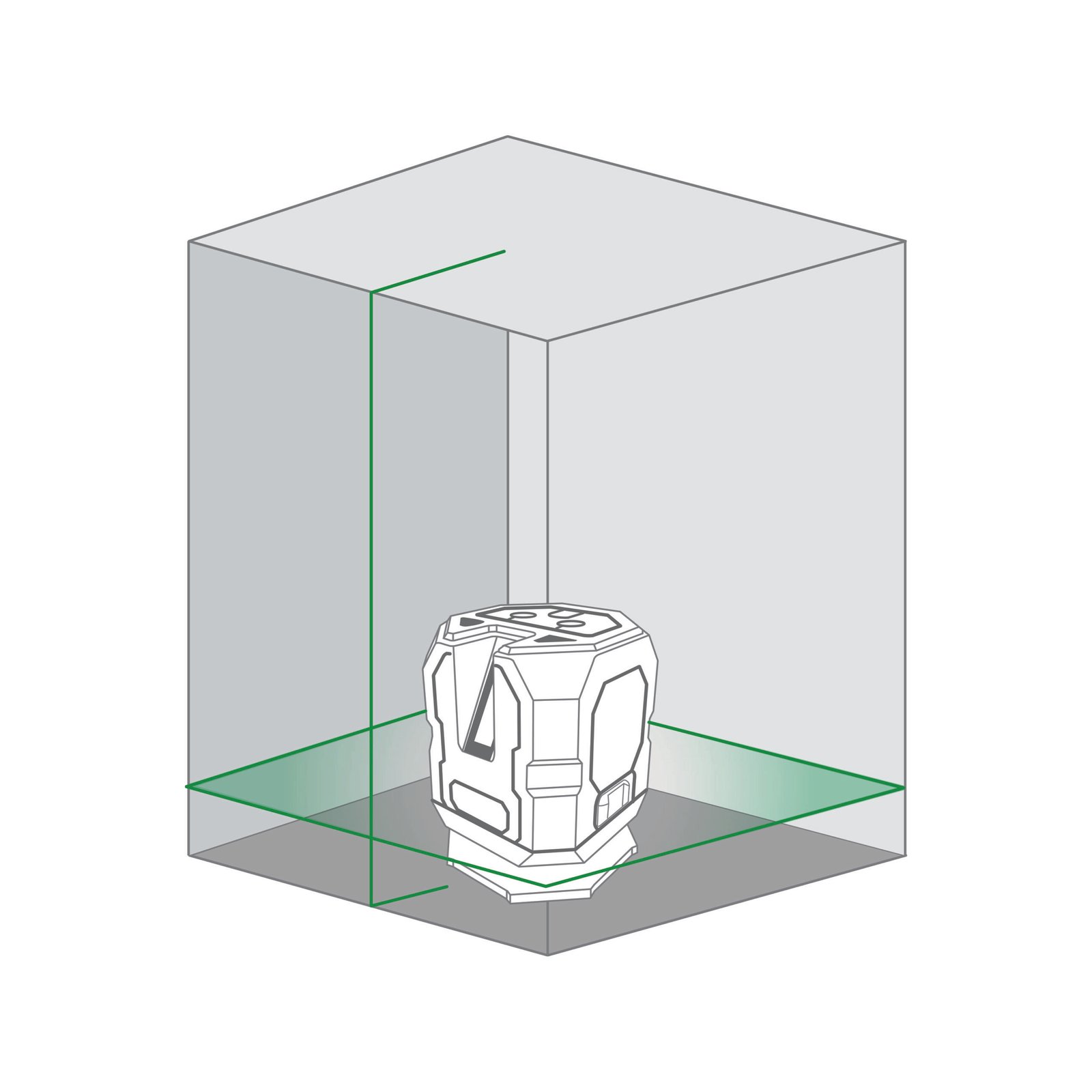 • Autolivello laser verde. Proietta: un piano orizzontale su 360° più un piano verticale a 90° formando 1 croce a parete