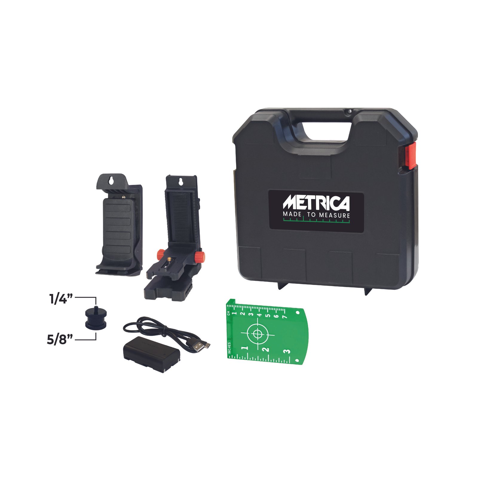 • Fornito con supporto magnetico per muratura e cartongessisti in valigetta rigida.
