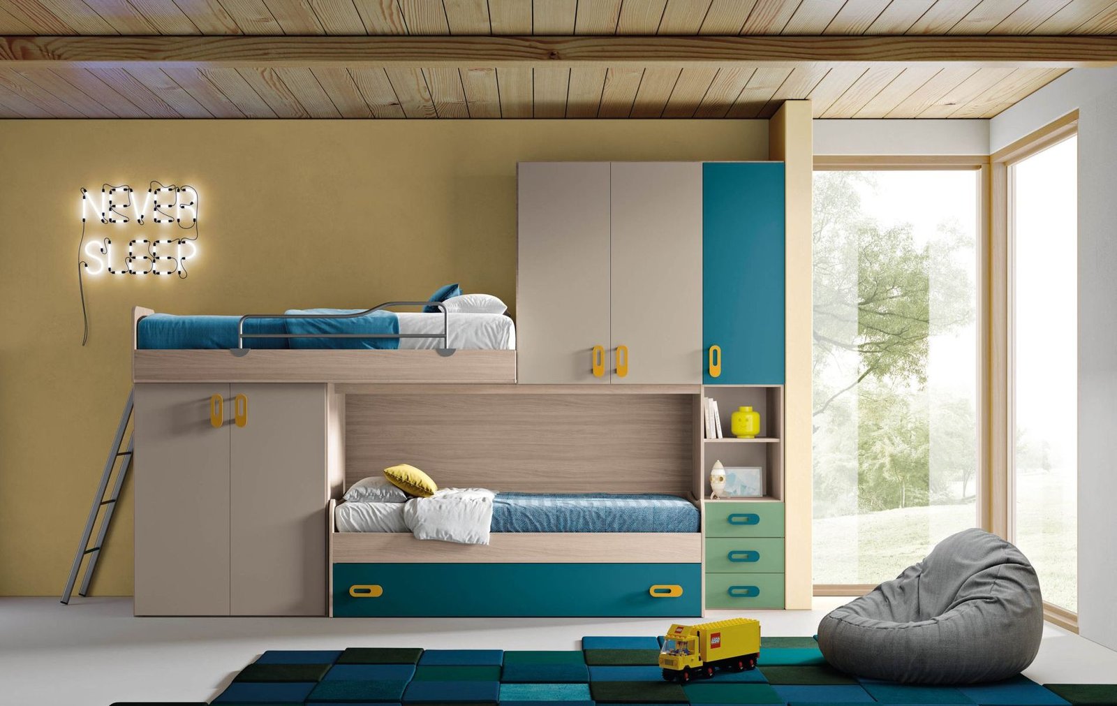 • Design Moderno e Personalizzabile: Caratterizzata da linee pulite e finiture contemporanee, la cameretta è disponibile in diverse colorazioni per adattarsi a ogni gusto. La combinazione proposta in foto è Olmo, Ocean e Verde Papua.