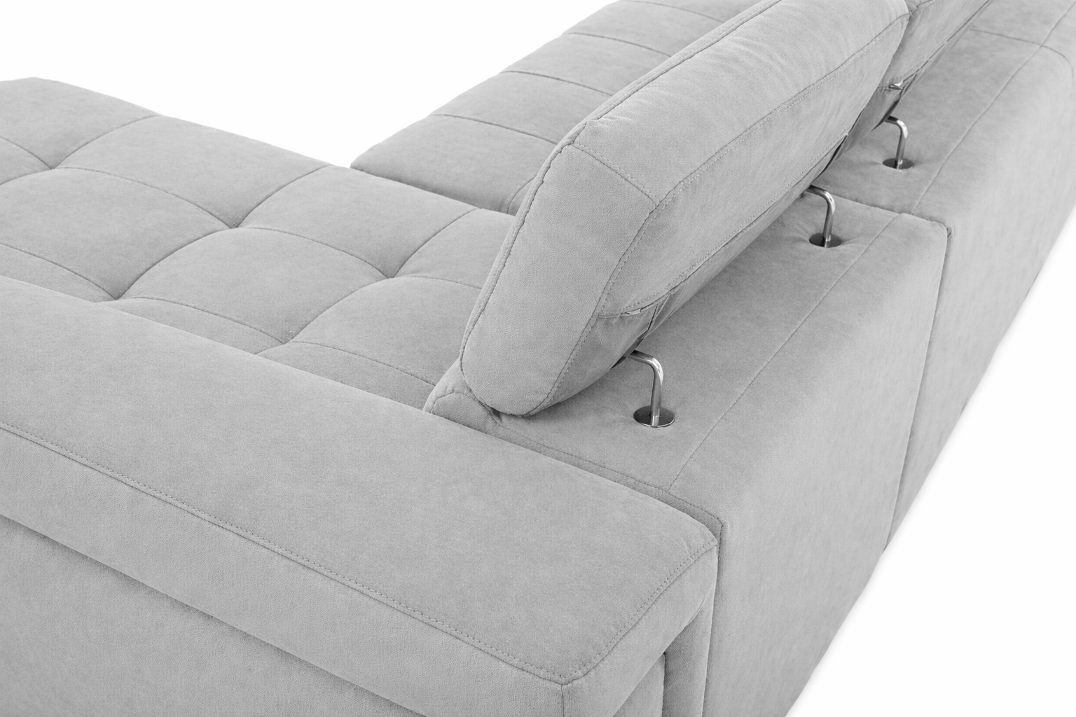 • Design e Comfort: Il divano presenta un design moderno con forme morbide e cuscini dello schienale abbondanti per un comfort ottimale. I poggiatesta in lega metallica sono regolabili a microscatti (da 0 a 90°, minimo 13 scatti) per personalizzare il livello di relax.