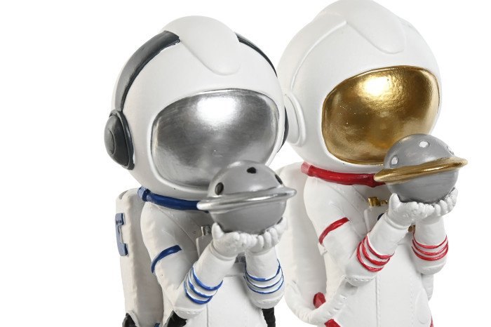 • Design Dettagliato: La statuetta raffigura un astronauta in una posa giocosa, seduto su un corpo celeste (luna o pianeta), con dettagli realistici della tuta spaziale bianca e colorazioni vivaci in rosso o blu.