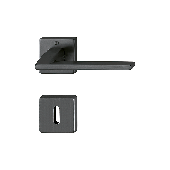 Guarnitura con rosetta e bocchetta HOPPE in ottone per porte interne, disponibili nelle varianti Cromo satinato e Nero satinato