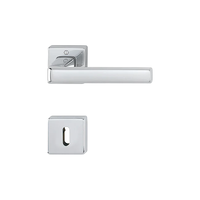Guarnitura con rosetta e bocchetta HOPPE in alluminio per porte interne, disponibili in tre varianti: Cromo satinato, Cromo lucido, Oro lucido: