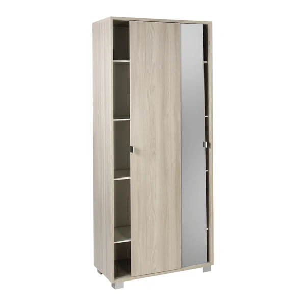 • Design Salvaspazio: Dotato di due pratiche ante scorrevoli, questo mobile è ideale anche per ambienti ristretti, poiché non richiede spazio aggiuntivo per l’apertura delle ante. Una delle ante include un ampio specchio a figura intera.