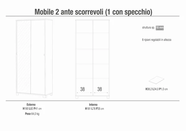 • MISURE: H 190 – L 82 – P 41