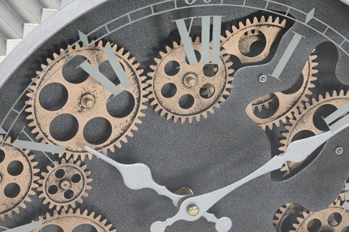 Se cerchi un complemento d’arredo che non passi inosservato, lo hai appena trovato. Questo orologio in stile Steampunk gioca con i contrasti tra il grigio antracite e il calore degli ingranaggi interni.