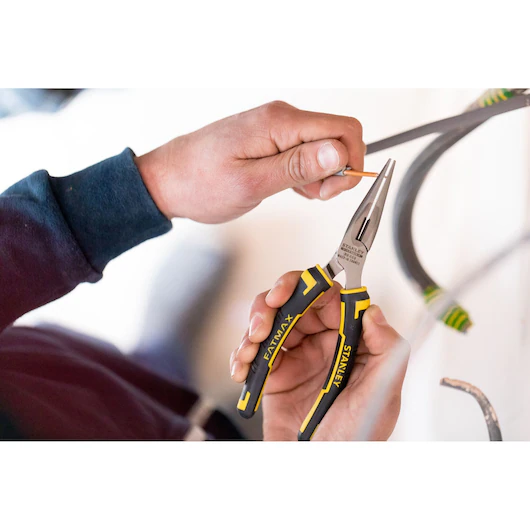 Le pinze Stanley 0-89-869 sono un modello a becchi mezzotondi lunghi della linea FatMax, progettate per lavori di precisione, manipolazione di piccoli oggetti e taglio di fili, non per un uso combinato generico.