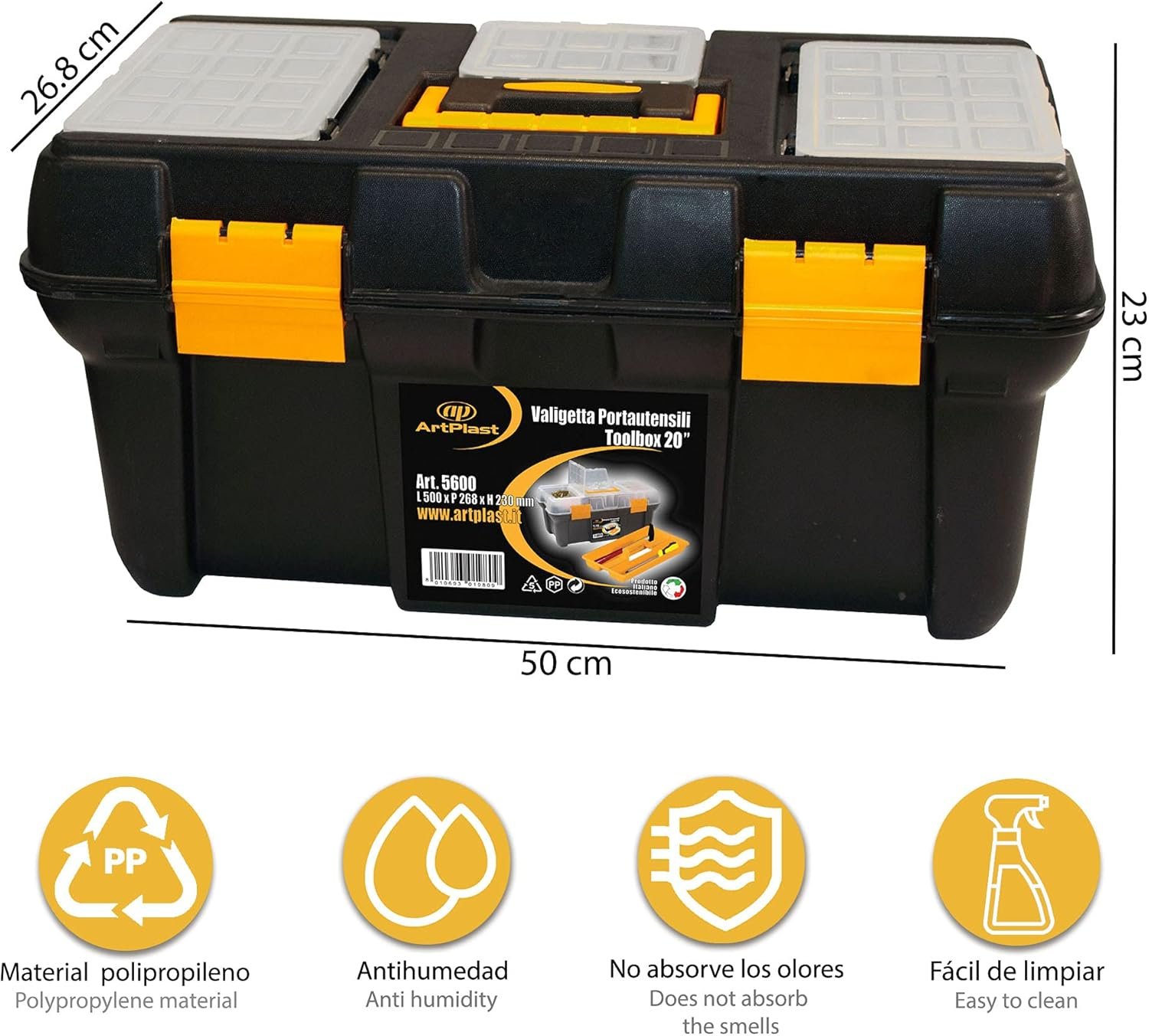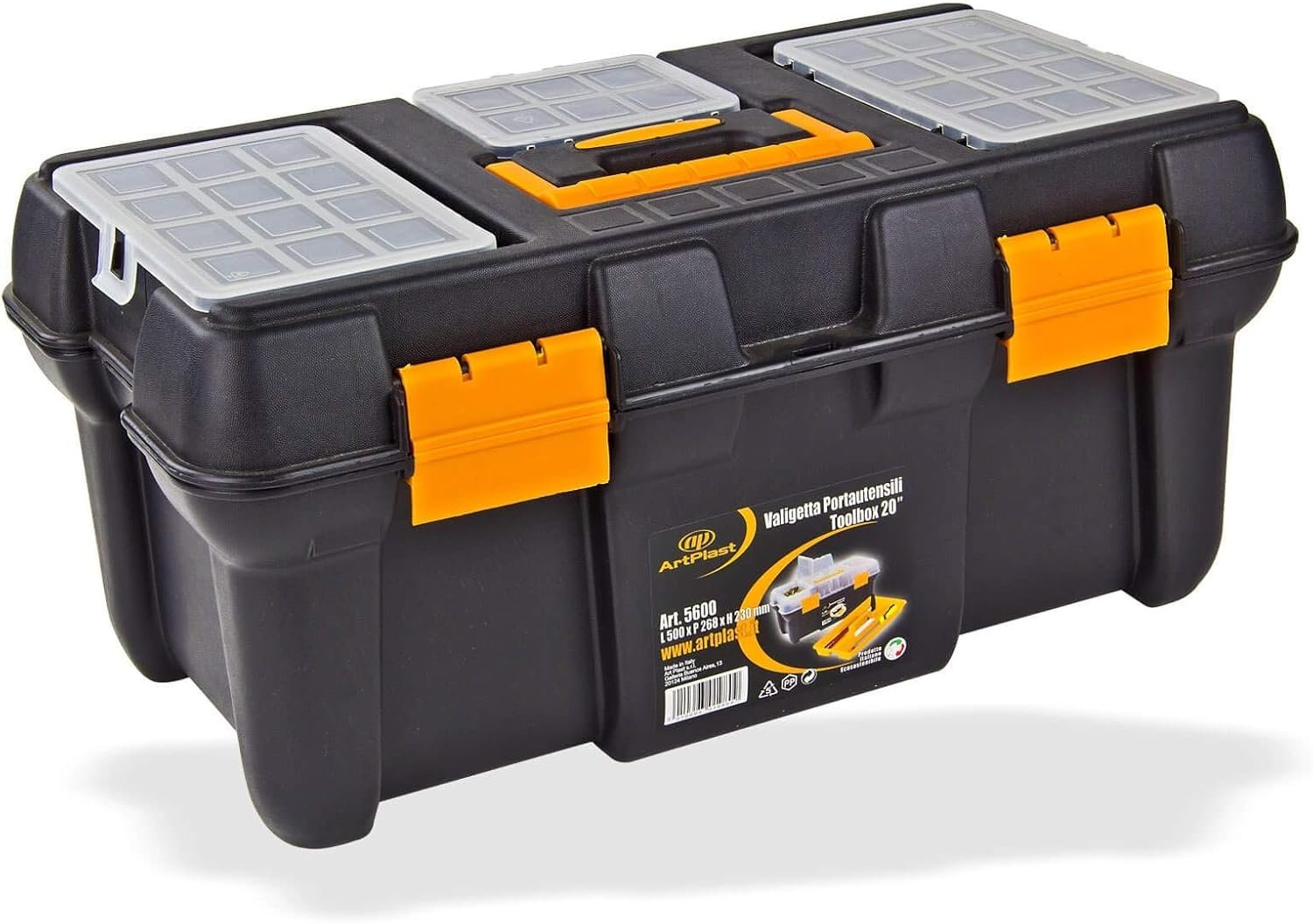 • Vani Portaminuteria: Include vani integrati nel coperchio, ideali per organizzare viti, tasselli, chiodi e altri piccoli accessori, con coperchi trasparenti per un’identificazione immediata del contenuto.