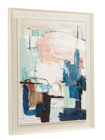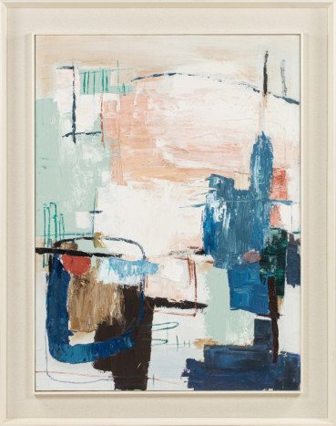 Il dipinto si presenta come un dialogo tra forme geometriche accennate e pennellate libere e materiche. La composizione non cerca la simmetria, ma un equilibrio visivo basato sul contrasto: