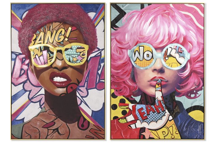 Porta l’energia vibrante della Street Art e del fumetto d’autore tra le tue mura domestiche con questa coppia di tele d’impatto. Le opere celebrano la forza dell’iconografia femminile attraverso colori saturi, onomatopee iconiche e un design che non passa inosservato.