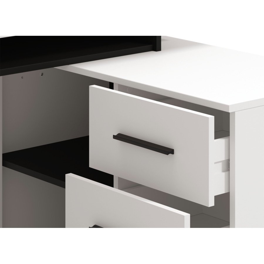 • Organizzazione Efficiente: L’unità di archiviazione include tre cassetti capienti e due vani a giorno (nicchie), perfetti per riporre e organizzare materiali di cancelleria, libri e quaderni.