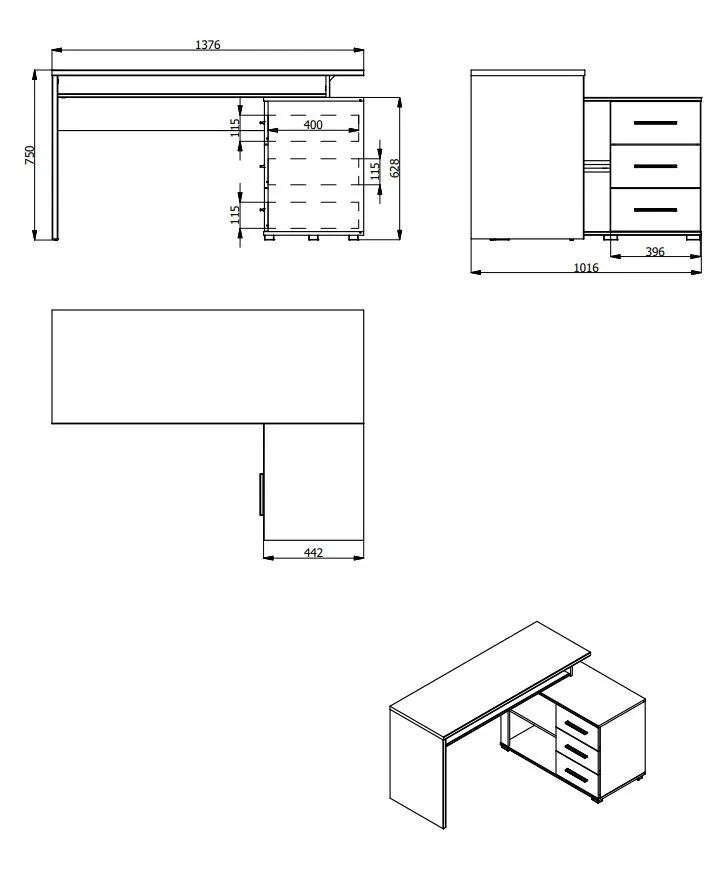 • Versatilità di Montaggio: L’unità contenitore integrata è regolabile e può essere montata sia come scrivania angolare che come soluzione lineare, adattandosi alle tue esigenze di spazio.