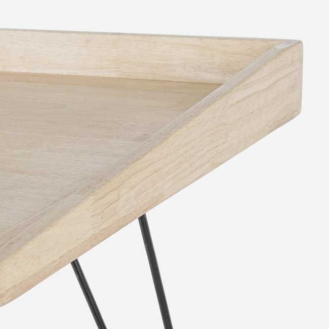 • Design Distintivo: Il contrasto tra il piano in legno di gomma (rubber wood) con finitura a cera e le gambe in acciaio nero verniciato a polvere epossidica aggiunge un tocco contemporaneo e deciso all’ambiente. Il piano presenta una bordatura laterale che ricorda i classici banchi di scuola.
