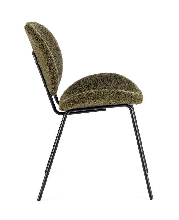 • Rivestimento Tendance: Seduta e schienale sono rivestiti in morbido tessuto di poliestere effetto bouclé nel trendy colore verde scuro, che offre una sensazione tattile piacevole e un aspetto sofisticato.