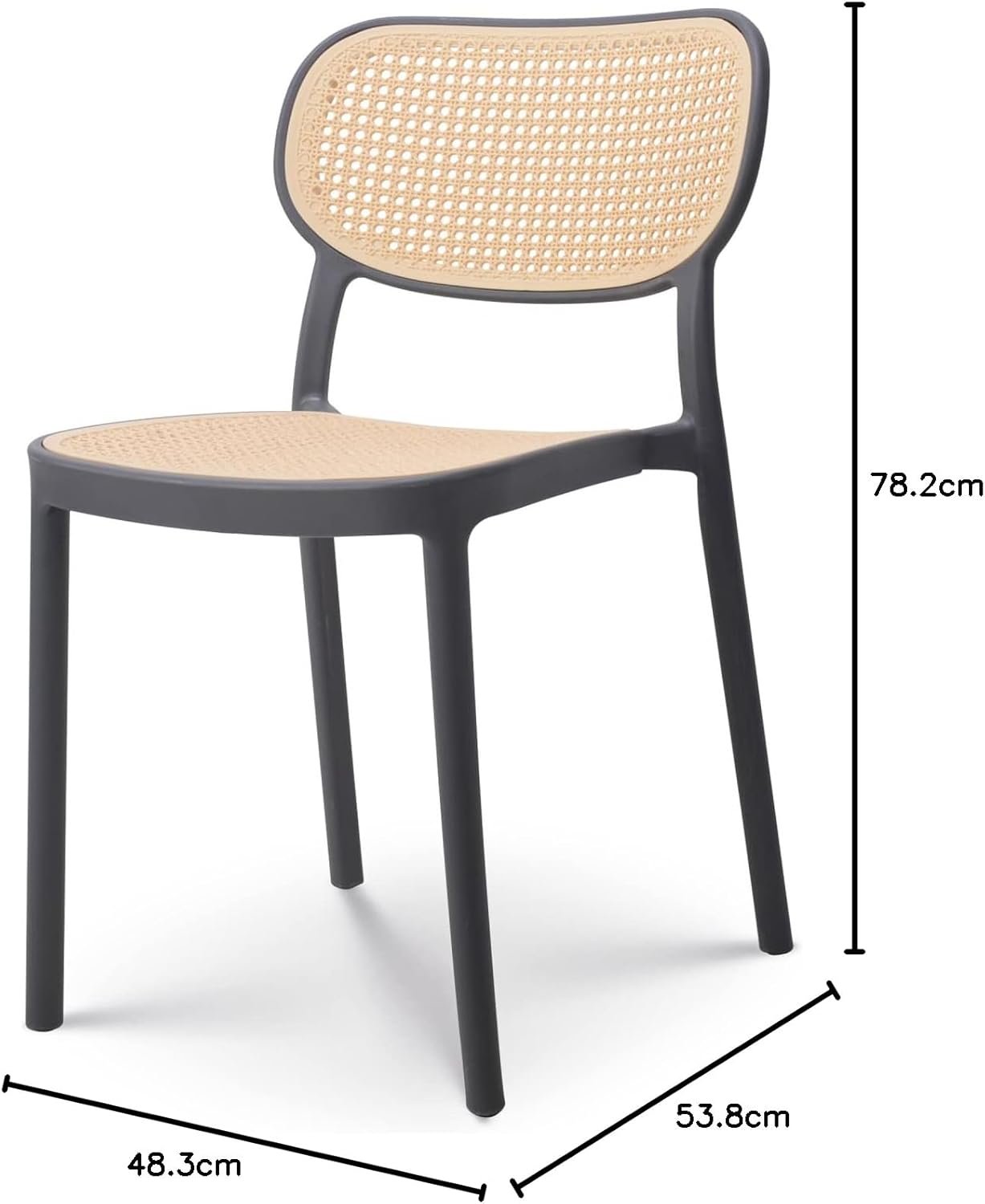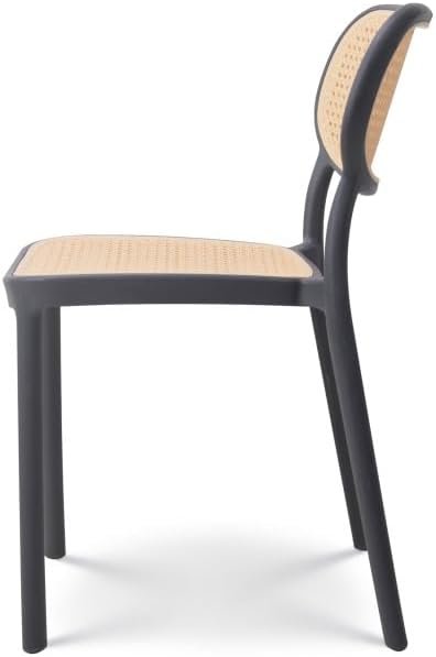 • Effetto Visivo: La seduta e lo schienale presentano un affascinante effetto paglia di Vienna. Questo design aggiunge un tocco retrò e vintage, pur mantenendo i vantaggi del materiale plastico.
