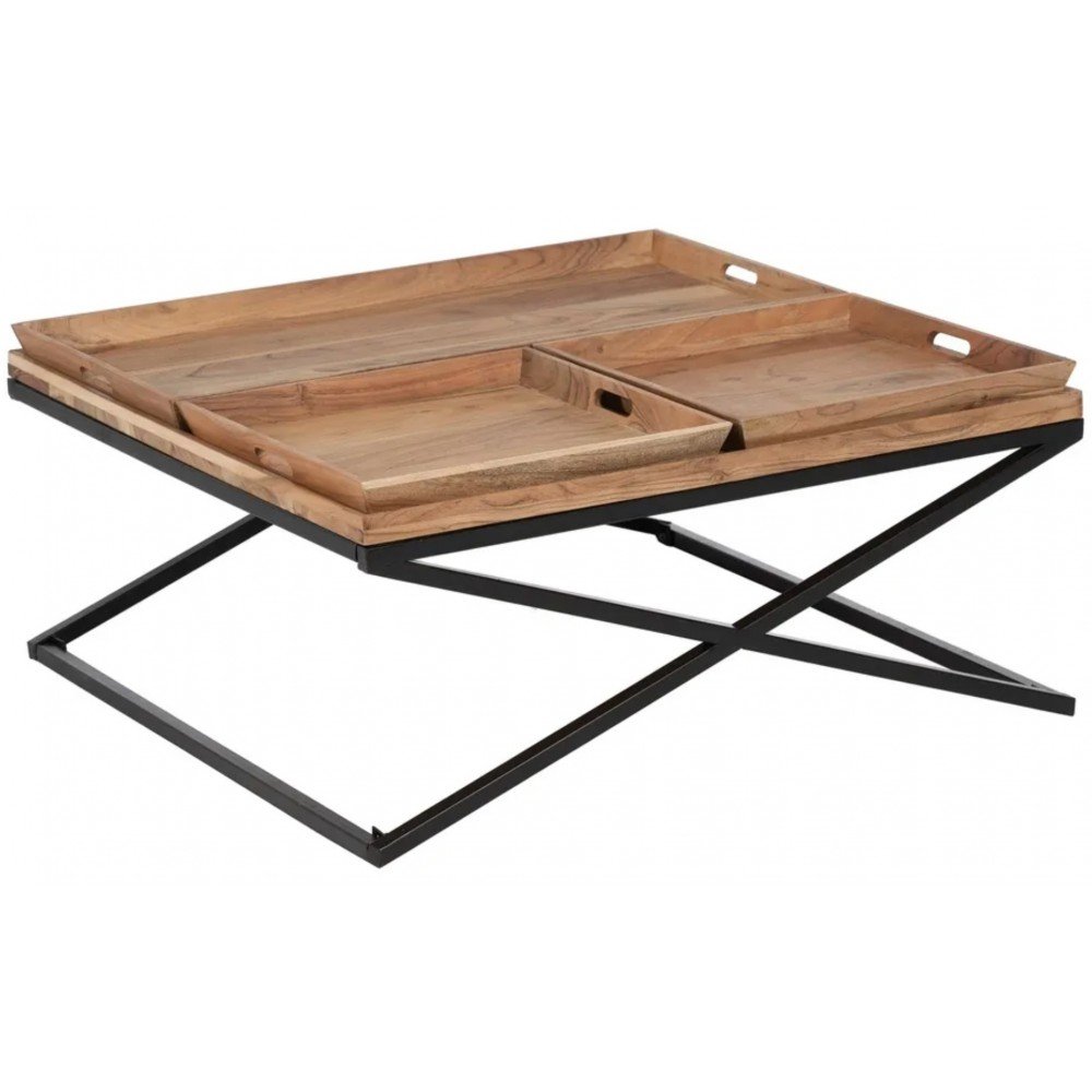 • Materiali di Qualità: La struttura solida a “X” è realizzata in acciaio verniciato a polvere nero, che garantisce stabilità e durata. I vassoi sono in legno massiccio di mango, noto per la sua robustezza e le venature naturali uniche.
