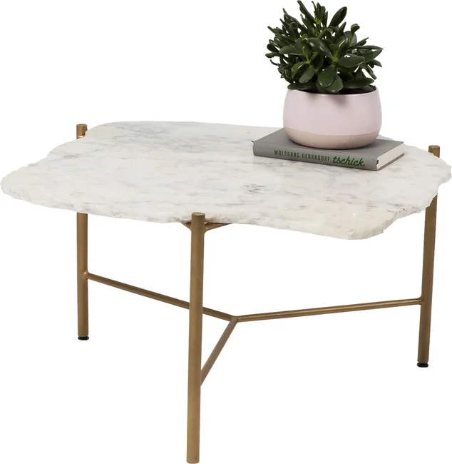 • Design Unico e Naturale: Il punto focale è il piano realizzato in vero marmo bianco, caratterizzato da un bordo grezzo e organico che accentua la bellezza naturale e il carattere della pietra.