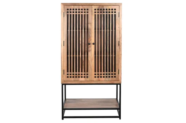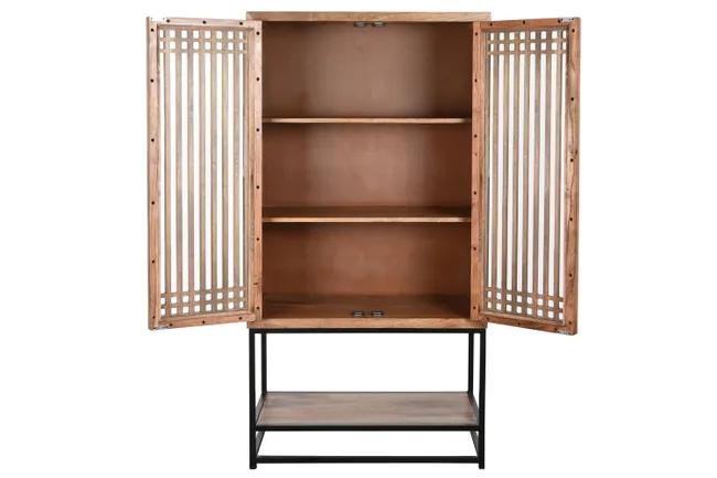 • Design Unico: L’elemento distintivo sono le due ante superiori, caratterizzate da un’elegante griglia di listelli in legno che crea un effetto vedo-non-vedo.